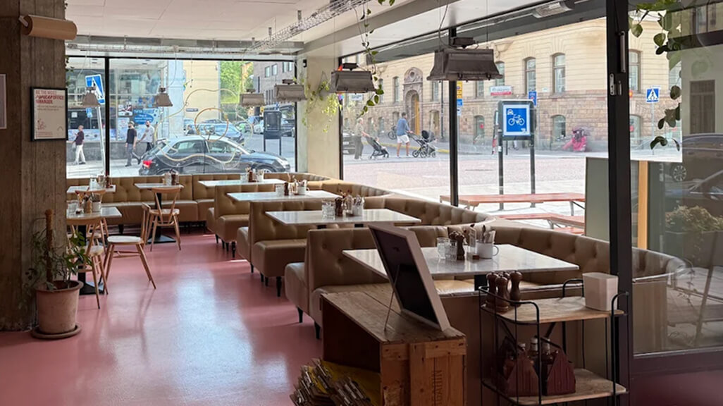 Café Pom & Flora har tre filialer i Stockholm, men vi föredrar den i Vasastan. Här serveras fräscha rätter som yoghurtskålar, gröt, açaí bowls och avokadotoast – men vårt bästa tips är det hembakade bananbrödet. Lokalen har en bohemisk känsla med naturliga material och gröna växter. Det är dock ett populärt ställe, så köer är vanliga, särskilt under helgerna. Uteserveringen lockar under varma dagar, men bullernivån inomhus gör att caféet inte är det bästa valet för den som vill jobba eller plugga i lugn och ro.