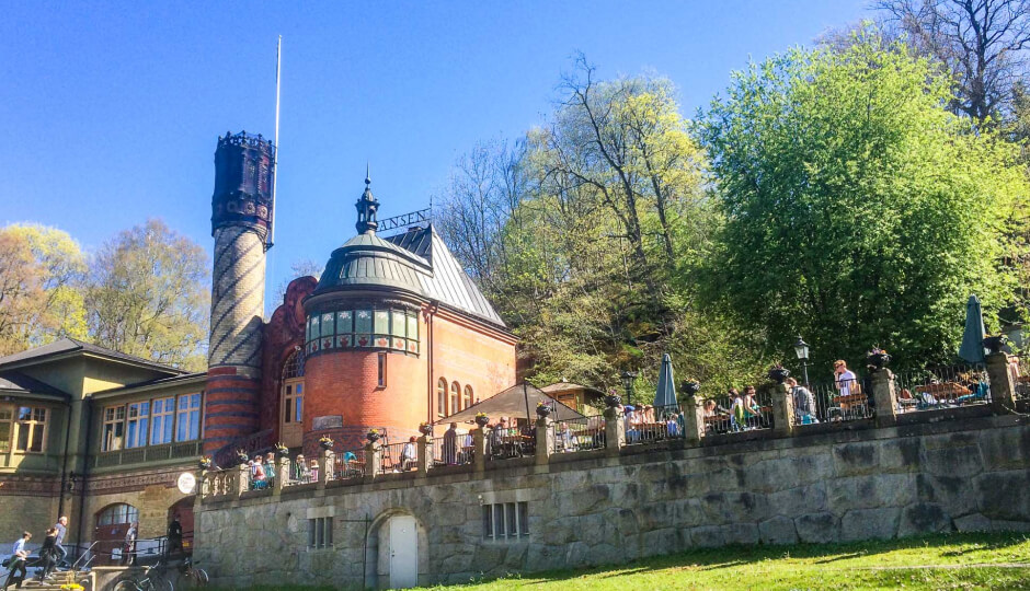 Flickorna Helin & Voltaire på Djurgården är ett charmigt café i slottliknande byggnad med brasa på vintern och solig terrass på sommaren.